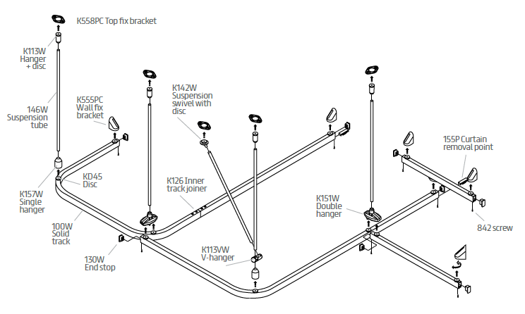 Movatrack K100 Anti-Ligature Curtain Divider Track System
